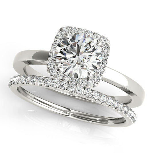Simple 14K White Gold Solitaire Square Halo Engagement Ring