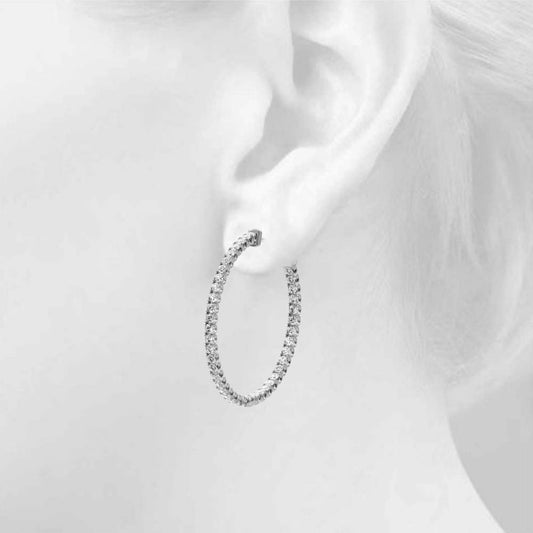1.6CT Round Inside-Out Diamond Hoop Earrings 14K White Gold 35MM