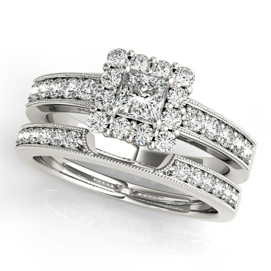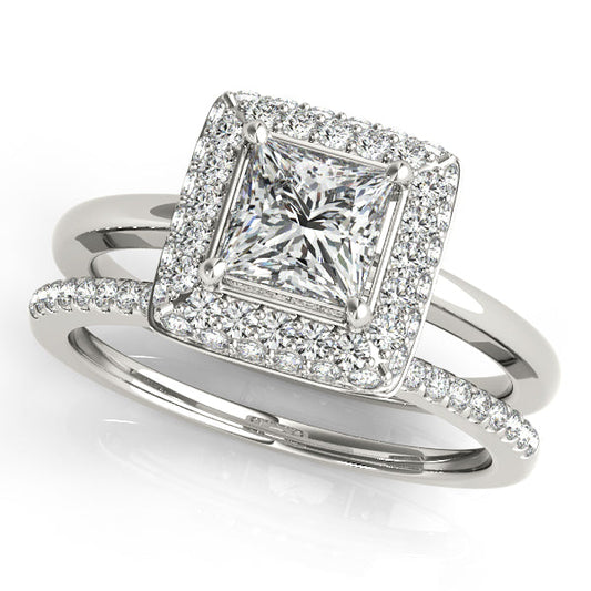 14K White Gold Engagement Ring Princess Cut Diamond 1CT Square Halo
