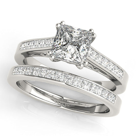 14K White Gold 1CT Princess Cut Diamond Engagement Ring Split Shank