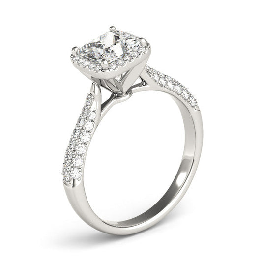 14K White Gold Diamond Engagement Ring with Square Halo Split Shank