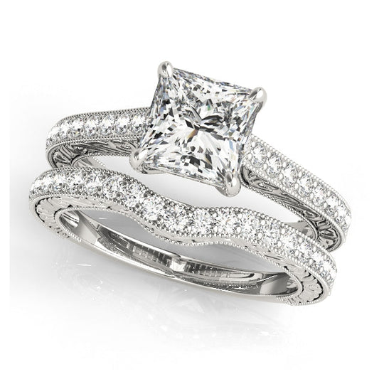 1CT Princess Cut Diamond Engagement Ring 14K White Gold Vintage Trellis