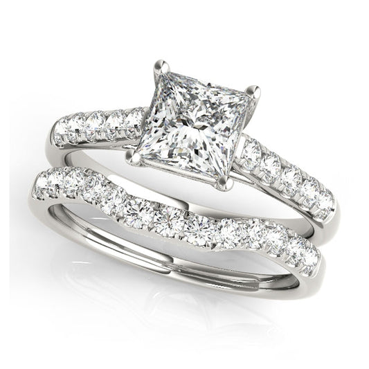 Discover princess cut engagement rings with square-shaped diamonds and brilliant faceting for exceptional sparkle. These rings feature ideal cut diamonds in VS1 clarity, E-F color, set in solitaire, halo, split-shank, vintage, and curved designs. Available in 10K, 14K, and 18K white, yellow, and rose gold, or platinum. Find your perfect ring or contact us for custom options.