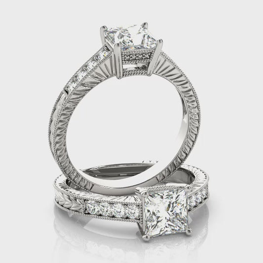 1CT Vintage Engagement Ring Princess Cut Lab Grown Diamond