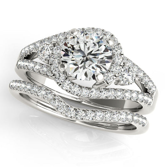 1.6CTW Round Diamond Engagement Ring 14K White Gold Curved Halo