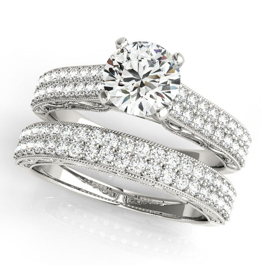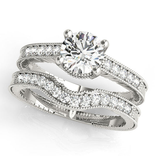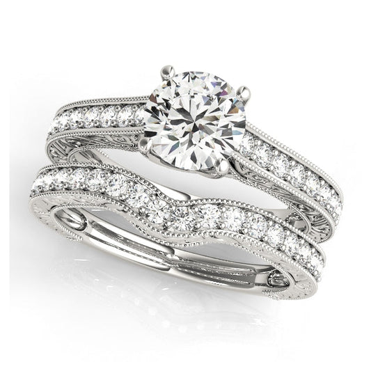 1CT Round Diamond Engagement Ring 14K White Gold Filigree Vintage
