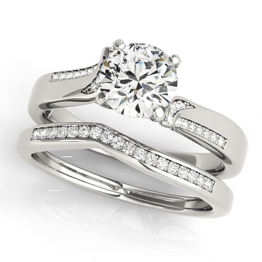 1CT Round Diamond Engagement Ring 14K White Gold U-Shaped