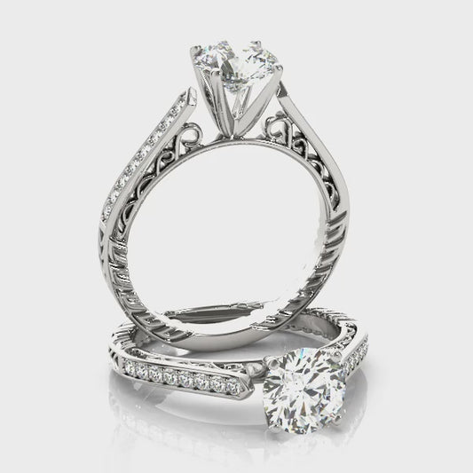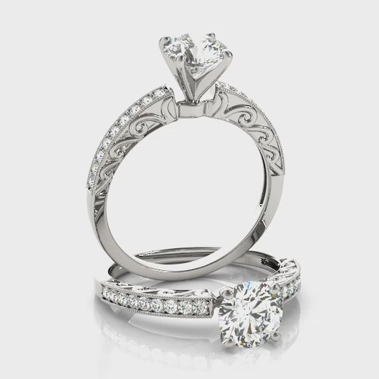 1CT Luxury Vintage Round Diamond Engagement Ring Curved Shank