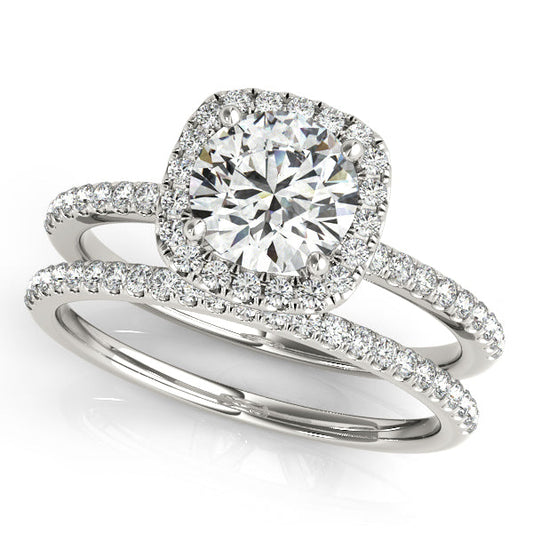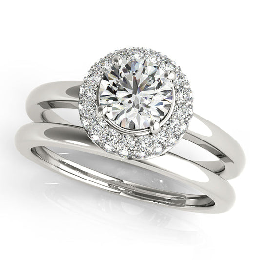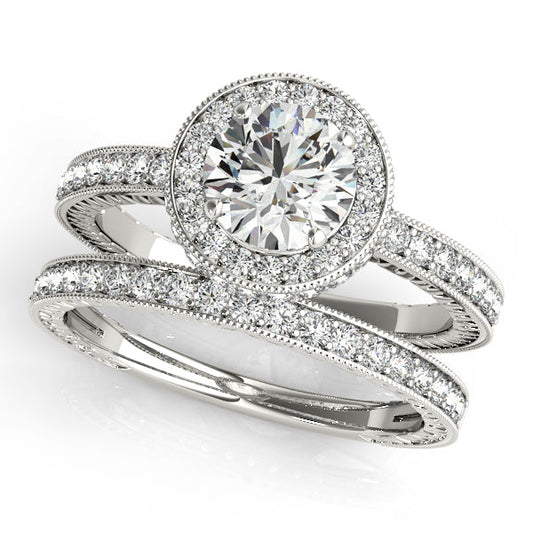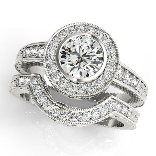Diamond Engagement Ring 14K White Gold with Vintage Bezel Halo