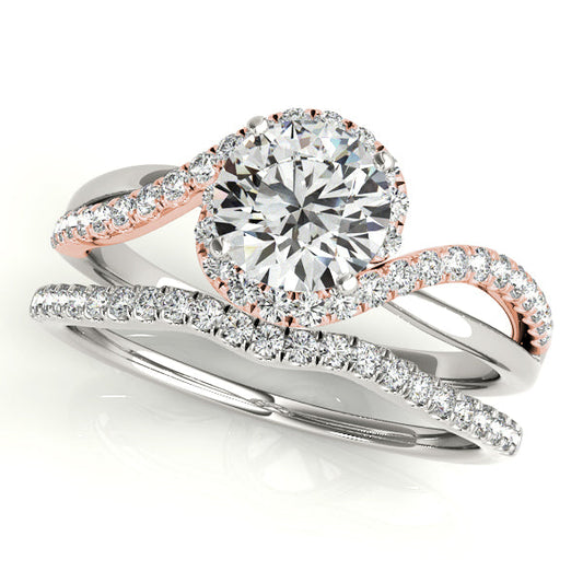 Curved Bypass Engagement Ring 14K Two Tone White Rose Gold