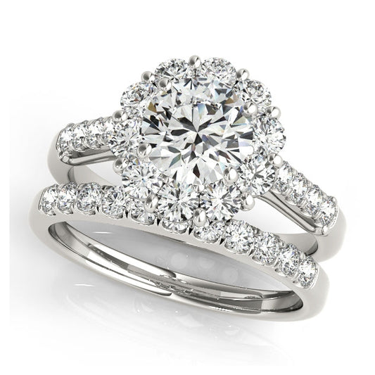 Floral 14K White Gold Lab Diamond Halo Engagement Ring