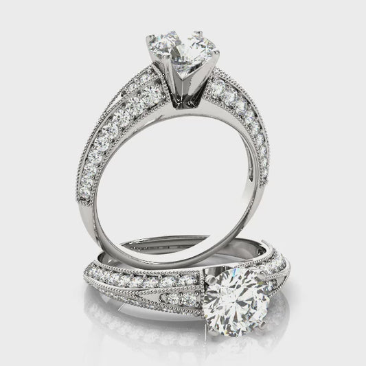 Fine 1CT Vintage Accent Lab Grown Diamond Engagement Ring