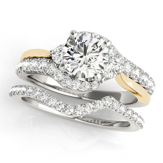 Two Tone 14K White Yellow Gold Engagement Ring Curved Split Shank