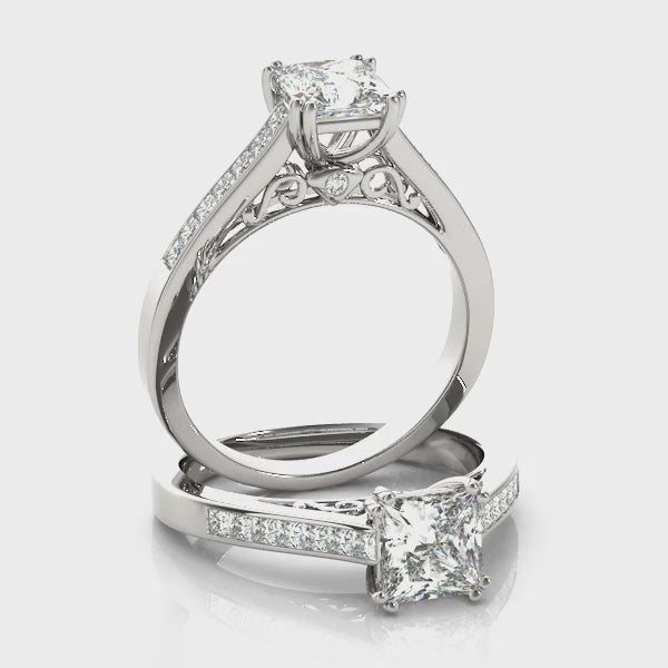 1CT Cathedral Princess Cut Diamond Engagement Ring White Gold