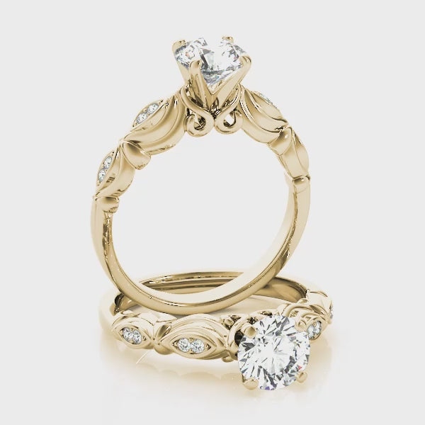 Timeless Round Cut Diamond Side Stone Ring with Ornate Vintage Band