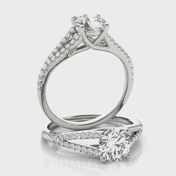 1CT Split Shank Round Diamond Engagement Ring 14K White Gold