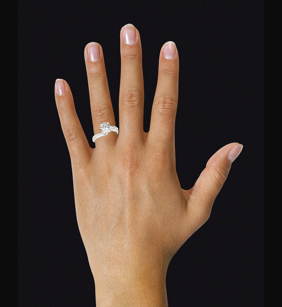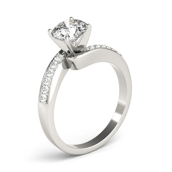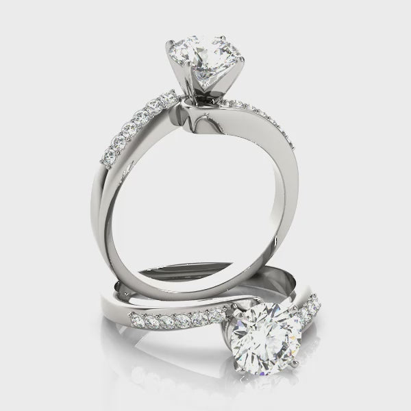 Fine Bypass Engagement Ring Beautiful Round Cut Diamond Side Stones