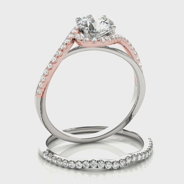 Curved Bypass Engagement Ring 14K Two Tone White Rose Gold