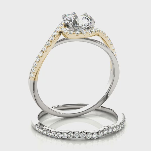 Exquisite Two Tone Engagement Ring with Curved Split Shank Round Diamonds