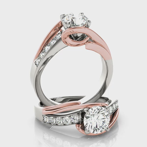 Artistic Two Tone Bypass Engagement Ring in White and Rose Gold