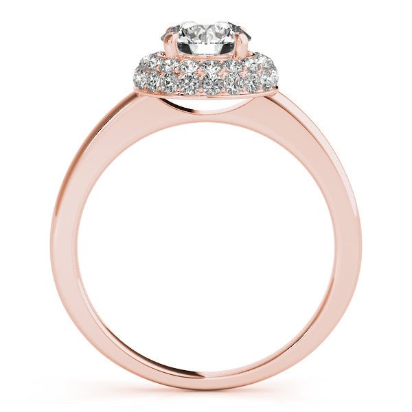 This stunning double halo engagement ring from Encore DT centers around a 1CT Lab Grown Diamond (VS1 clarity, F color, Excellent cut), framed by two radiant halos of 37 natural diamonds for layered brilliance. The band, cast in 14K Rose Gold, tapers gently to maintain a clean, modern profile while enhancing elegance. The intricate design makes the center stone appear even more prominent. Customizable as a Setting Only or with other center stone choices. Pair it with the matching band to complete a bold and dazzling bridal look.