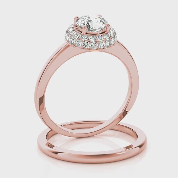 Double Halo 14K Rose Gold Engagement Ring 1CT Lab Diamond