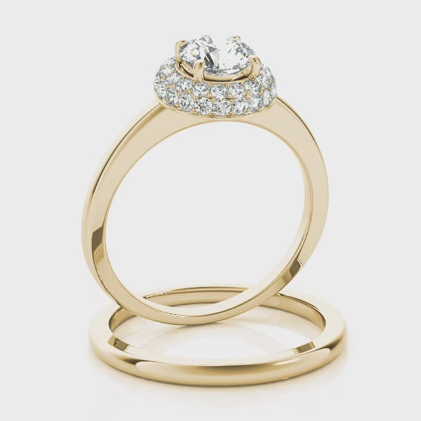 Double Halo Engagement Ring 1CT Round Diamond 14K Yellow Gold
