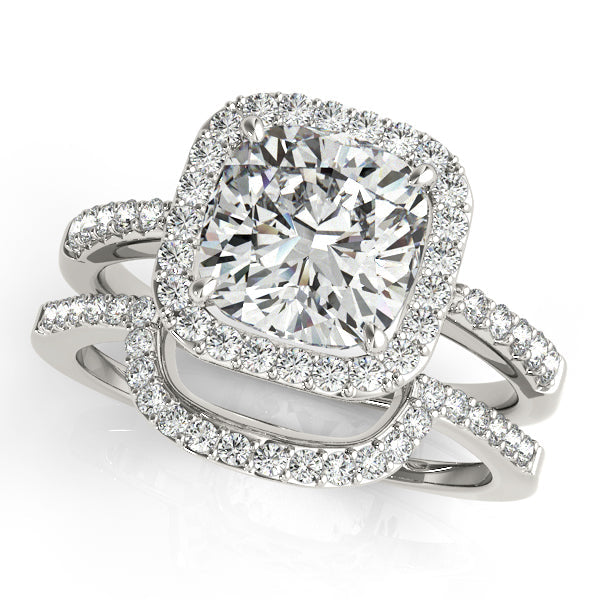 Royal Halo Engagement Ring with Attractive Cushion Cut Center Diamond