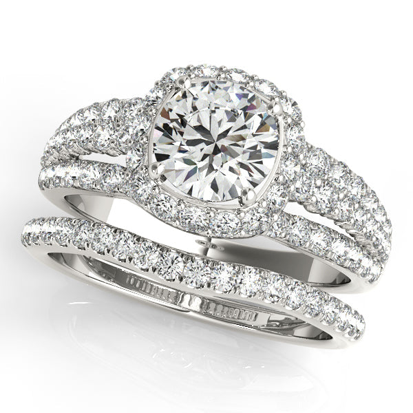 1.85CT Round Diamond Halo Engagement Ring 3-Row Split Shank