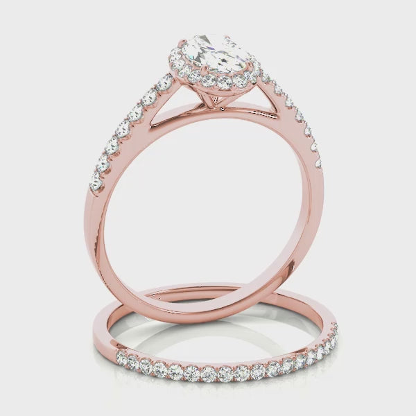 14K Rose Gold Oval Cut Diamond Engagement Ring Halo Side Stones