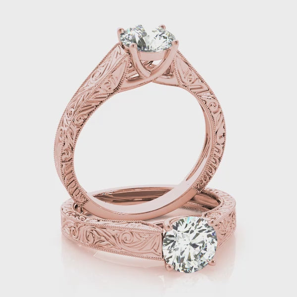 Solitaire Vintage 1CT Round Diamond 14K Rose Gold Engagement Ring