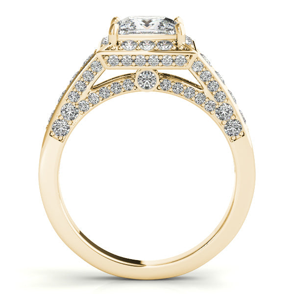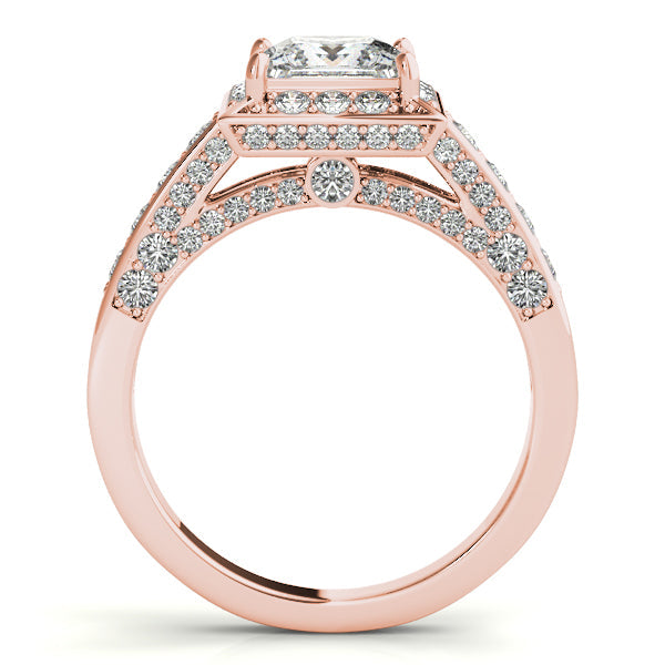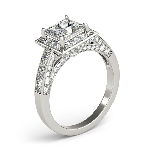 Architectural beauty meets dazzling radiance in this breathtaking engagement ring from Encore DT, showcasing a luminous princess-cut 1CT Lab Grown Diamond (VS1/F/Excellent Cut) encircled by a square halo of sparkling natural round diamonds. The 14K White Gold split-shank band features three rows of pavé-set diamonds on each side — two outer rows extending toward the split and a centered row running beneath the halo — creating cohesive brilliance and intricate detail. A cathedral-style setting, inspired by the grandeur of the Eiffel Tower, elevates the center stone with gracefully arched supports. A hidden bezel-set diamond accents the gallery beneath the halo for a secret touch of luxury. Offered preset with a 1CT Lab Diamond, customizable, or as a Setting Only, and available in White, Rose, or Yellow Gold — complete your love story with Encore DT.