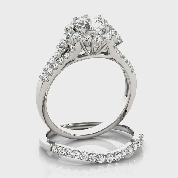 Contemporary Split Shank Engagement Ring with Pretty Round Diamond Halo