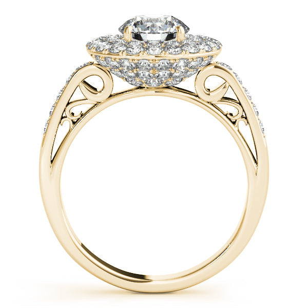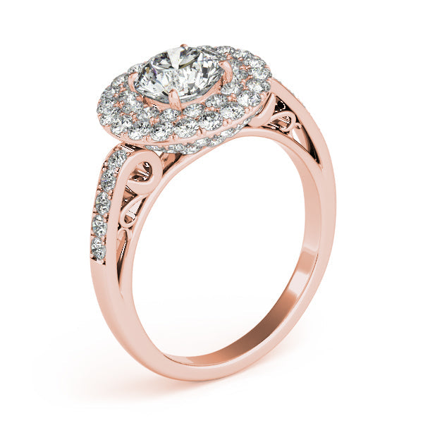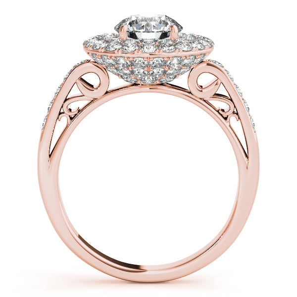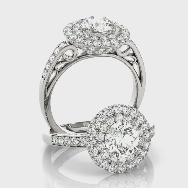 A true masterpiece of artistry, this ring showcases a brilliant round-cut center stone preset with a 1CT Lab Diamond (VS1/F/Excellent Cut), encased in a double halo of 78 natural side diamonds radiating unmatched brilliance. Beneath the crown lies a remarkable triple halo design wrapping the "vase," adding architectural depth and intricate beauty. The band gracefully transitions from a sleek base to a diamond-encrusted top, enhanced by delicate filigree scrollwork that evokes vintage elegance with a modern twist. Expertly crafted in 14K White Gold, with Rose and Yellow Gold options available, this showstopping piece is also offered as a setting-only for your personalization—exclusively from Encore DT.