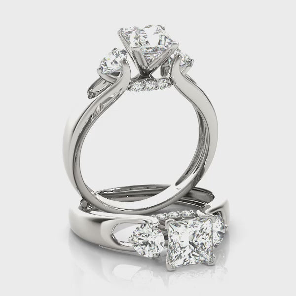 1.5CT 3-Stone Princess Cut Diamond Engagement Ring 14K White Gold