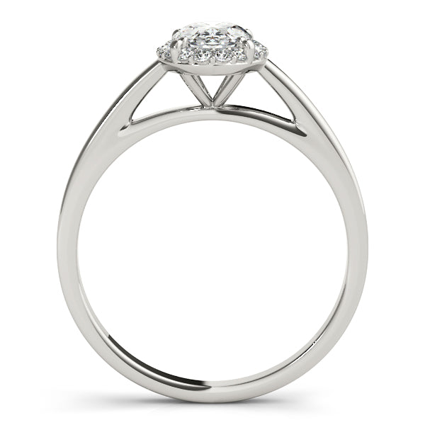 This timeless engagement ring features a captivating oval-shaped 1CT Lab Grown Diamond (VS1/F/Excellent Cut) center stone surrounded by 18 natural round side diamonds forming a sparkling halo. The 14K White Gold cathedral-style setting gracefully lifts the center stone, offering an elegant and airy silhouette that catches the light beautifully. A polished plain band, uniform in thickness, gives the design a modern and minimalist appeal while allowing the intricate halo to stand out. An open gallery under the halo emphasizes the ring’s brilliance and craftsmanship. Available in White, Rose, or Yellow Gold, this piece can be customized with different center stones or ordered as a Setting Only. Add a matching wedding band for a truly seamless bridal set—exclusively from Encore DT.