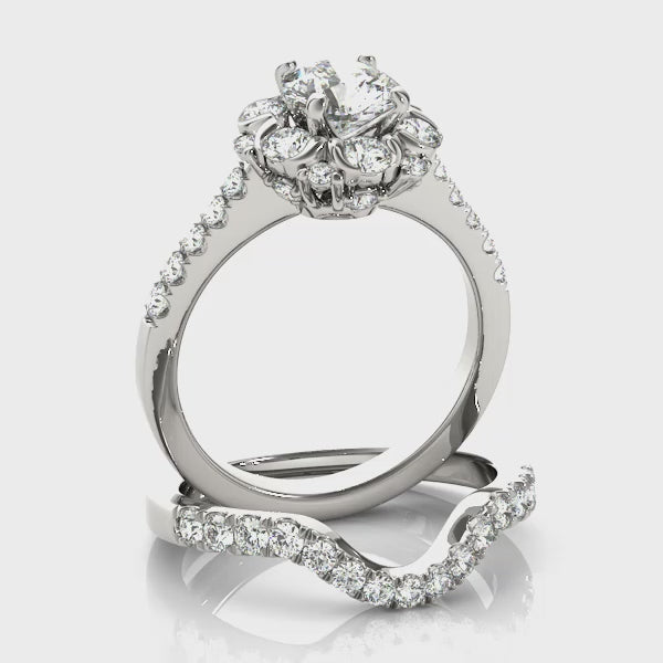 Extraordinary Halo Flower Engagement Ring Diamond Side Stones & Accents