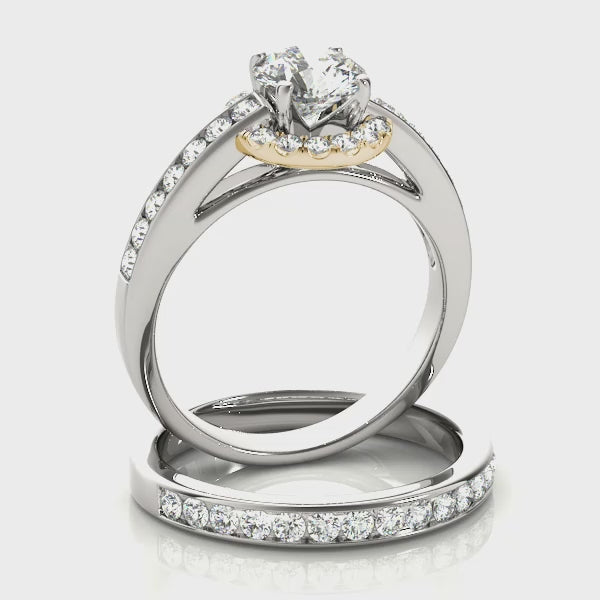 1CT Halo Diamond Engagement Ring 14K White and Yellow Gold