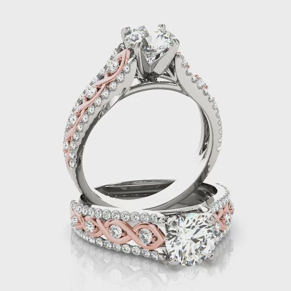 Two Tone Engagement Ring with Side Diamonds in Rose Gold Intertwine