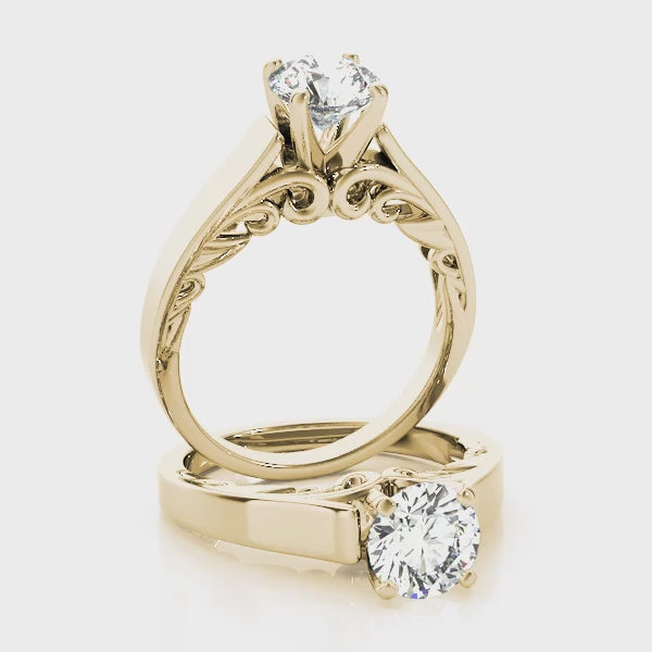 Vintage-Inspired Solitaire Diamond Ring with Detailed Shank Pattern