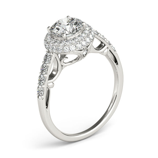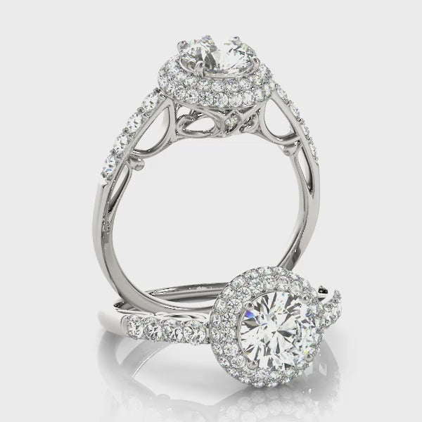 Double Halo Engagement Ring with Vintage Style Shank and Pretty Round Cut Diamonds