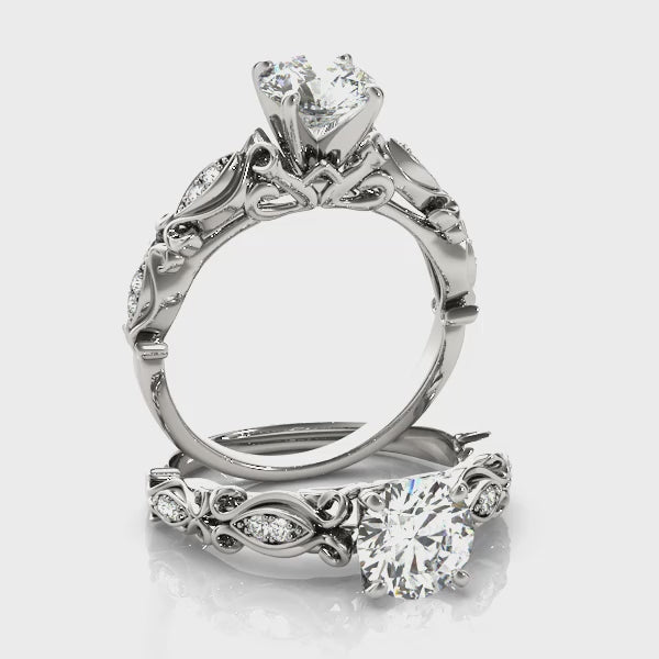 Artistic Vintage 14K White Gold Engagement Ring 1CT Round Lab Diamond