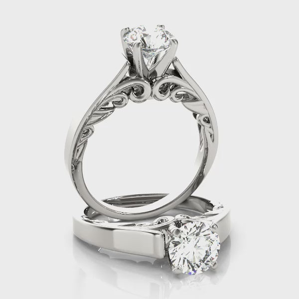 Solitaire Diamond Engagement Ring with Vintage Pattern on Shank